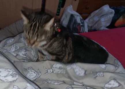 Koko is being fantaticly weired and sitting with her butt on one step and her front paws š¾ on the next. Also she loves to snuggle in bed with us, so cute. š