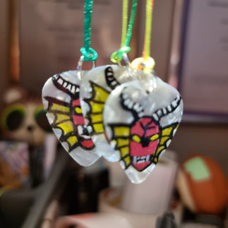 I loved Eddie Munson Like many of you guys so I have been Inspired to make Hellfire club Style items, So fare I have made these hand drawn plectrum necklace.
