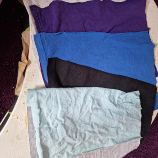 old T-shirts (off cuts/ backs left over from T-shirt through are good)